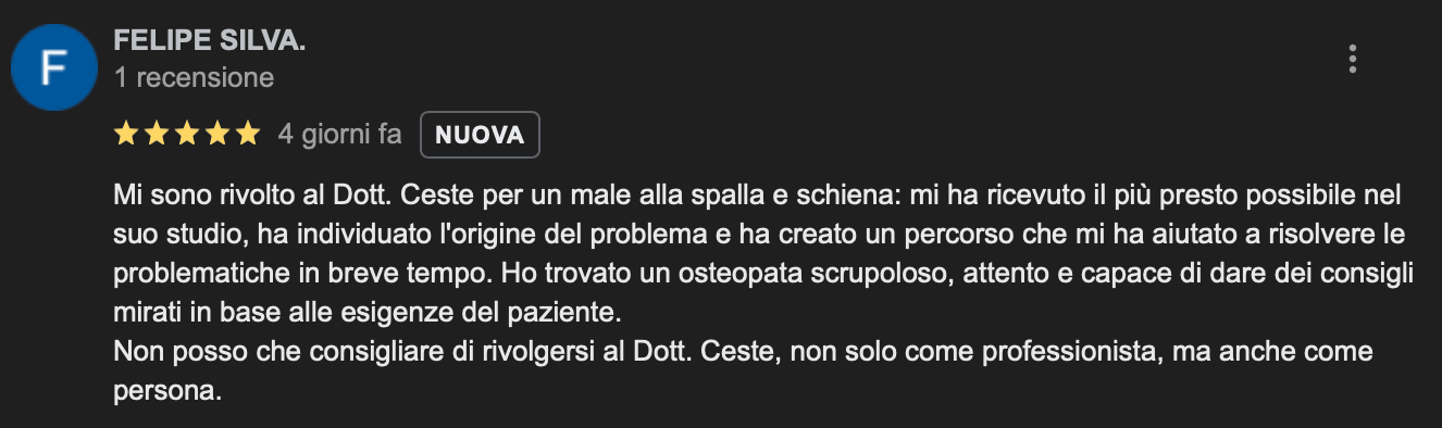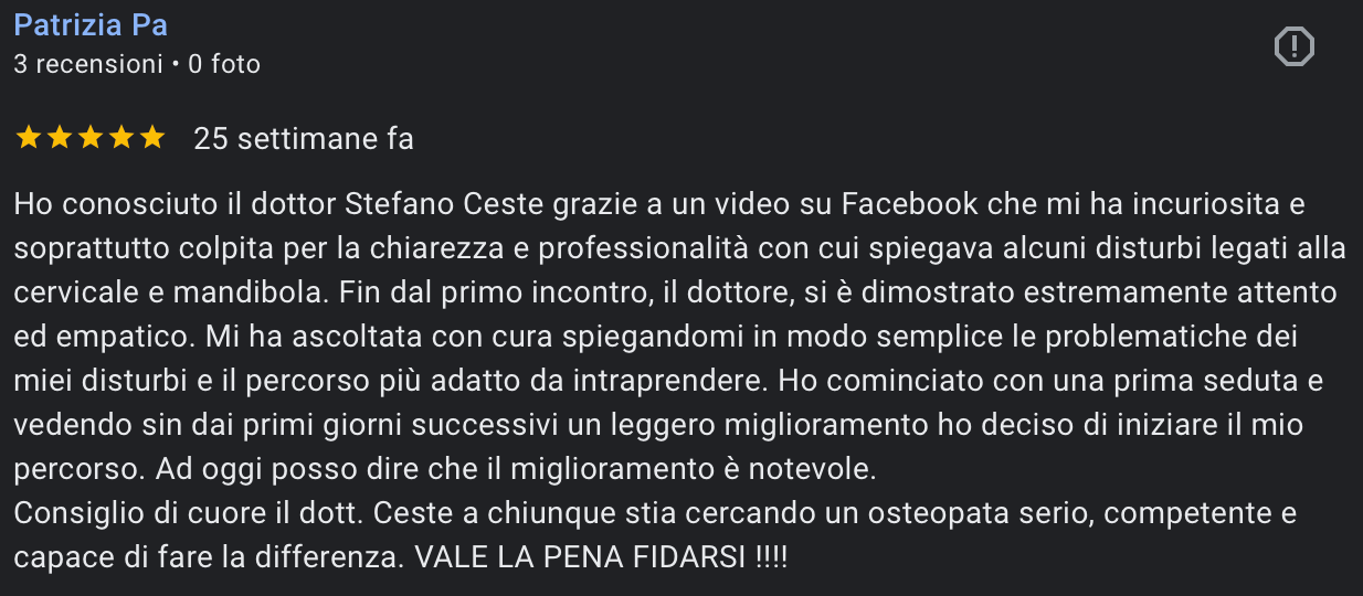 Sono Stefano Ceste, osteopata D.O. specializzato nei disturbi cranio-cervico-mandibolari e ho già aiutato più di 200 pazienti con dolore al collo, mal di testa, vertigini, disturbi mandibolari.